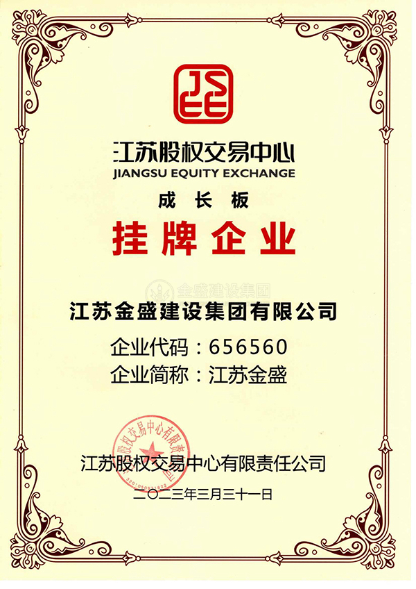 • 江蘇股權(quán)交易中心成長板掛牌企業(yè)資質(zhì)證書